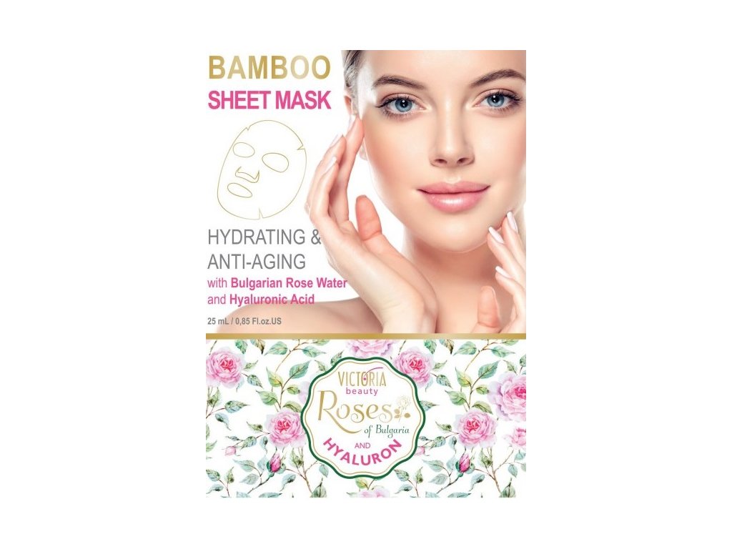 Obsahuje omlazující kyselinu hyaluronovou a růžovou vodu. Kvalitní textilní pleťová maska s výtažkem z bambusu intenzivně hydratuje a omlazuje pleť.