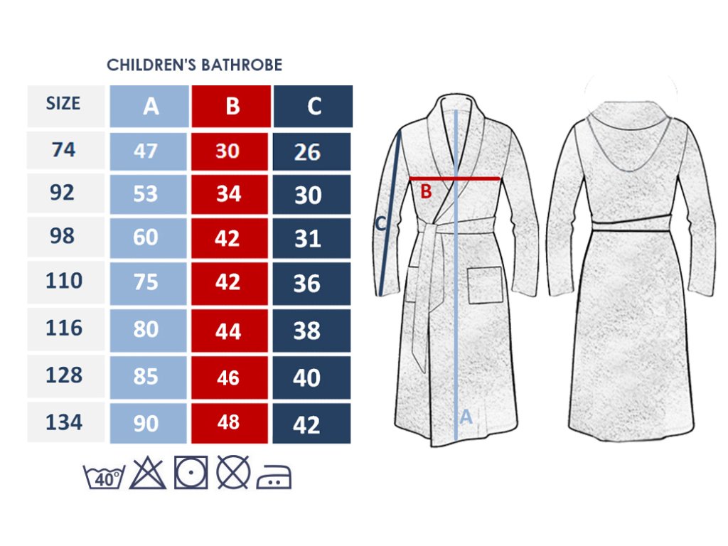 Tkanina ručníku je vyrobena ze 100% bavlny. Je vysoce hygroskopický, proto mytí vyžaduje více vody. Teplota praní je 40°C. Na barevné župany použijte prášek na praní barevných látek a aviváž! Po vyprání župan několikrát velmi dobře opláchněte.