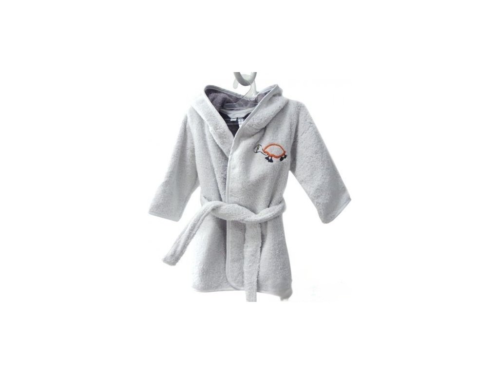 Měkoučký župan z čisté bavlny v jemné šedé barvě s výšivkou. Sametově hebká látka pohladí dětskou pokožku a vdechne jí pocit tepla a pohodlí.