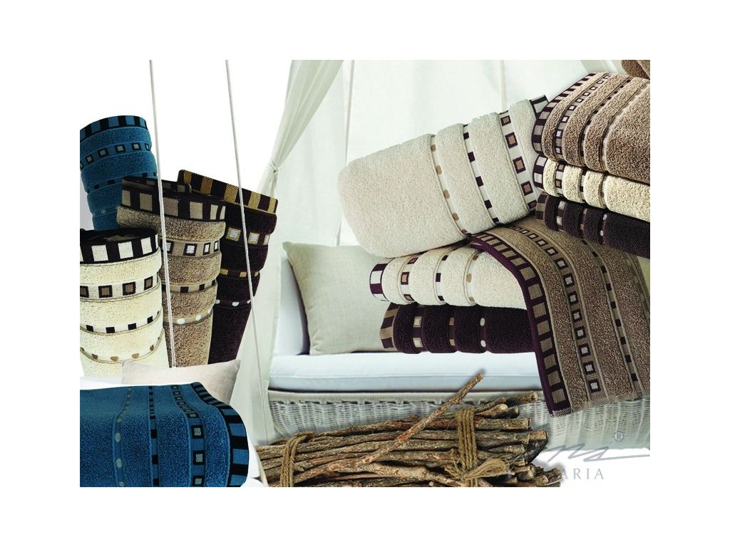 Klasická kolekce ručníků ze 100% mikrobavlny. Geometrické motivy v lemu s pastelovými barvami země. Zachovává si hebkost po každém praní.