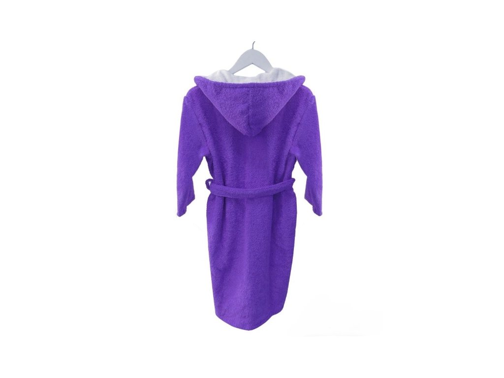 Měkoučký župan z čisté bavlny v syté fialové barvě s bílou kapucí. Sametově hebká látka pohladí dětskou pokožku a vdechne jí pocit tepla a pohodlí.