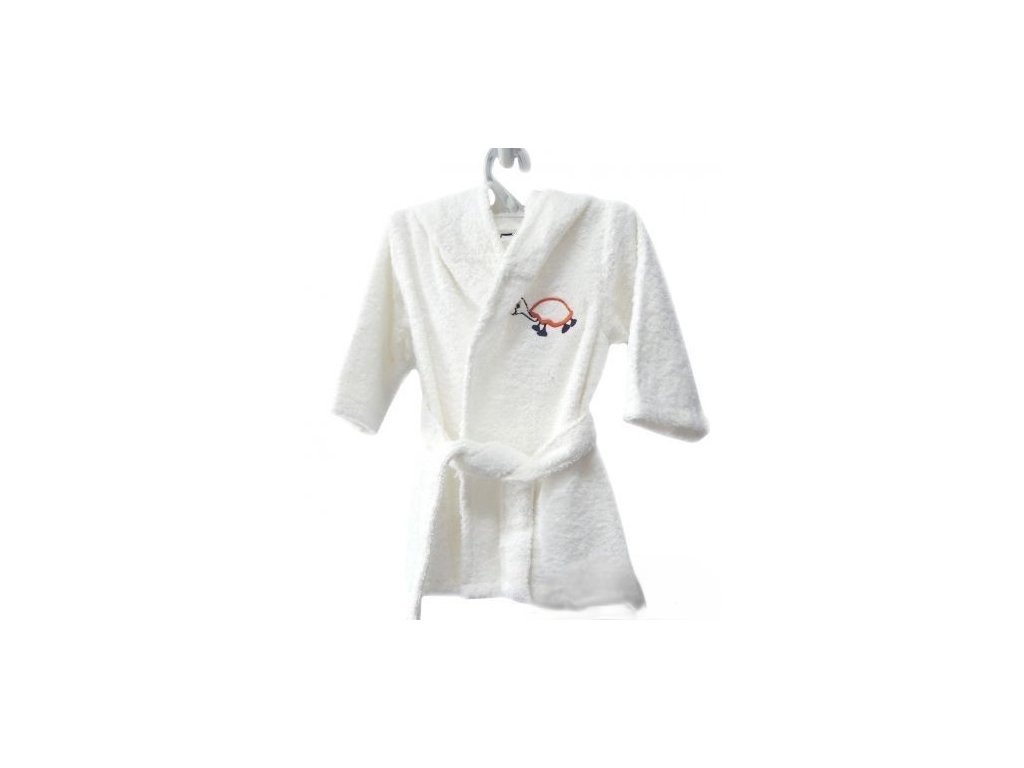 Měkoučký župan z čisté bavlny v bílé barvě s výšivkou. Sametově hebká látka pohladí dětskou pokožku a vdechne jí pocit tepla a pohodlí.
